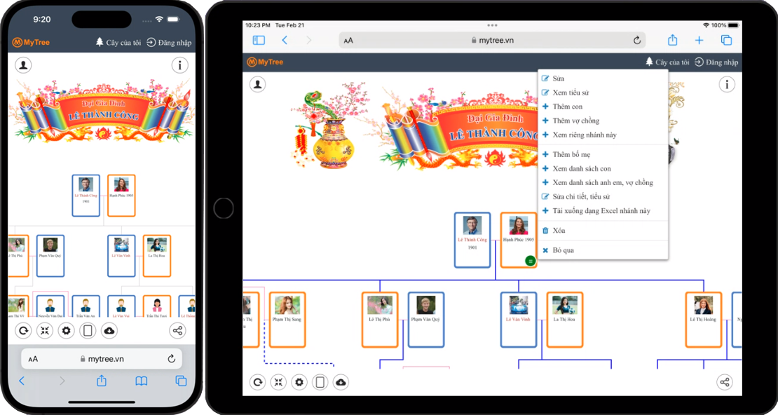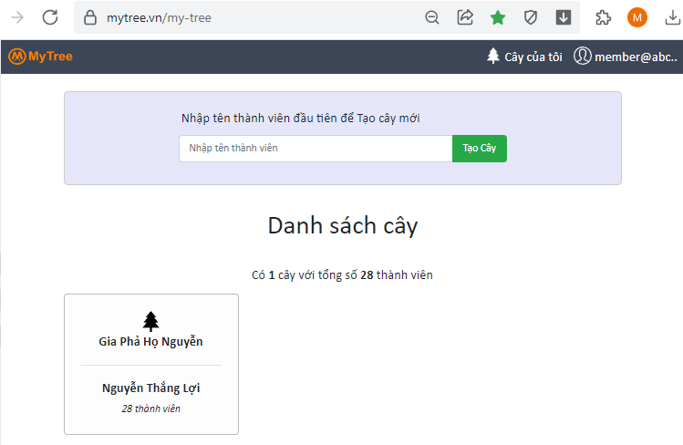 • MyTree có gói Thiết kế Web riêng cho từng dòng họ, gia đình, tổ chức, doanh nghiệp Xem thêm tại đây