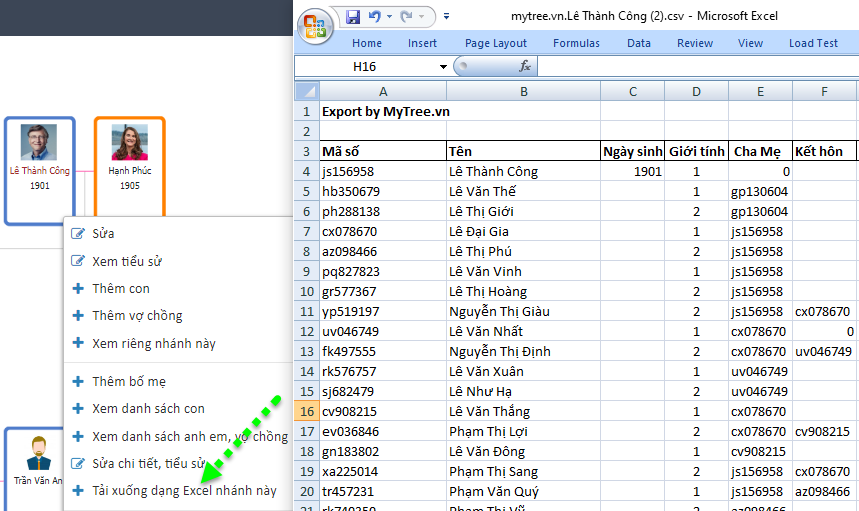 • Tải phả đồ dạng Excel để lưu trữ, backup dự phòng